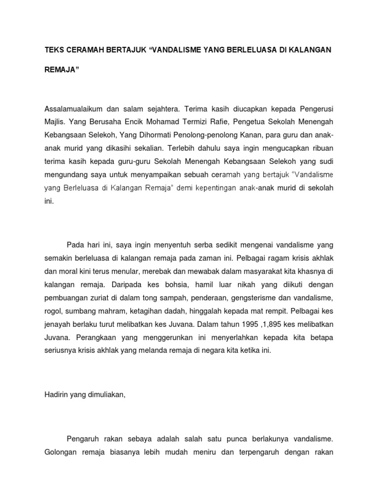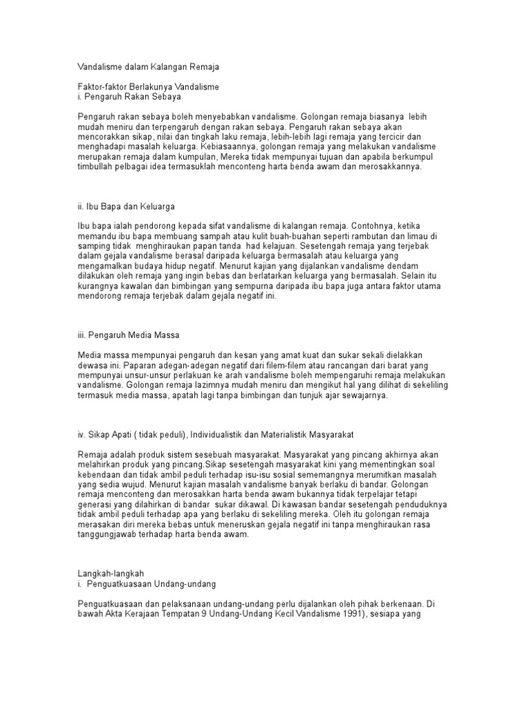 Contoh Karangan Punca Berlakunya Vandalisme By Da_Angelique474 03 Jul, 2022 Post a Comment Karangan Rangsangan Kesan Kesan Vandalisme Pdf Ceramah Vandalisme Pdf Teks Ceramah Sosial Bertajuk Vandalisme Yang Berleluasa Di Kalangan Remaja Pdf Gejala Vandalisme Pdf Vandalisme Dalam Kalangan Remaja Pdf Share No comments for "Contoh Karangan Punca Berlakunya Vandalisme"